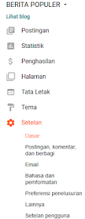 10.langka selanjuta kita masuk ke draf blog kita kembali ke menu setelan seperti pertama